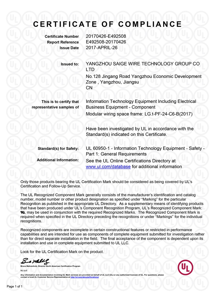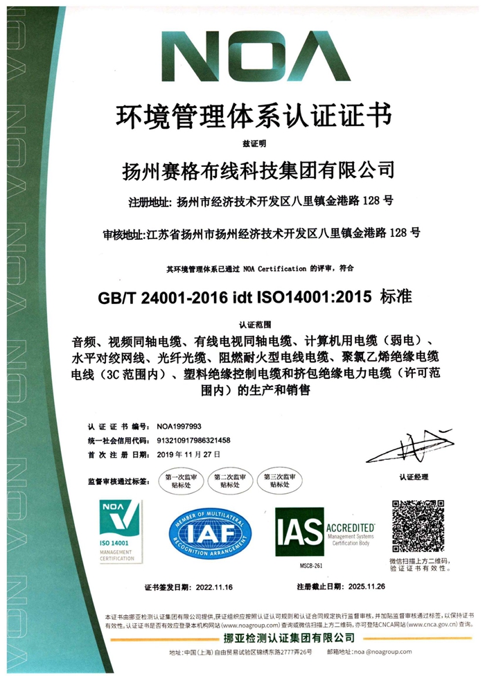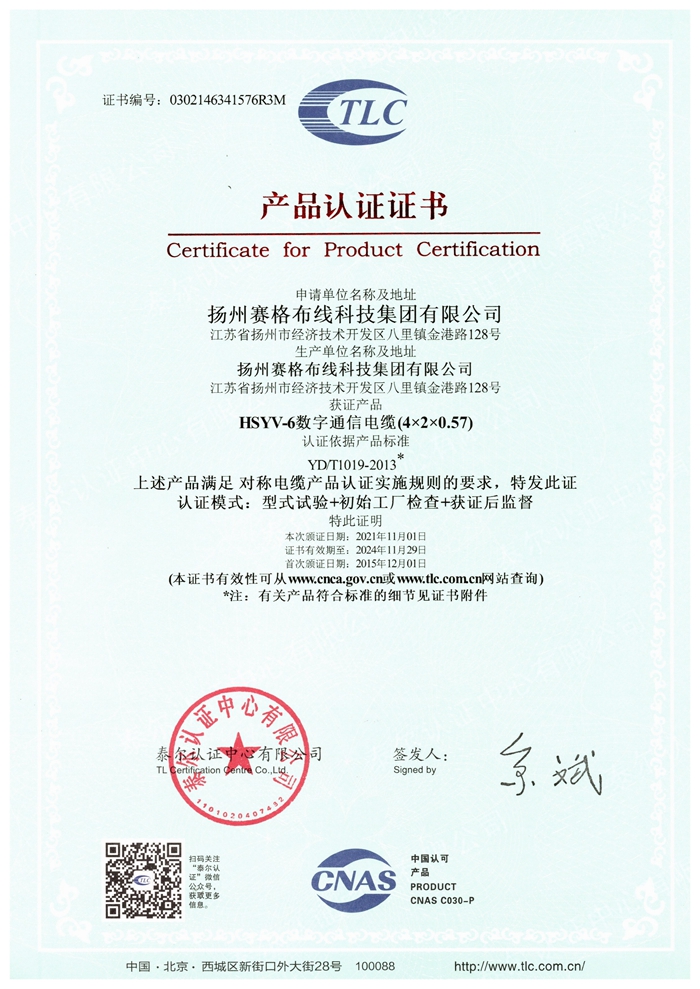 “賽格集團(tuán)”位于美麗的揚(yáng)州,公司占地面積106800平方米,固定資產(chǎn)20000萬(wàn)元,職工近千人,其中各類專業(yè)技術(shù)人員過(guò)百人,系中國(guó)安全防范產(chǎn)品行業(yè)協(xié)會(huì)理事單位。公司擁有各種先進(jìn)的綜合布線產(chǎn)品及線纜制造和實(shí)驗(yàn)檢測(cè)設(shè)備,產(chǎn)品嚴(yán)格按照國(guó)家標(biāo)準(zhǔn)或行業(yè)標(biāo)準(zhǔn)組織生產(chǎn),并已獲得國(guó)家質(zhì)量認(rèn)證中心CQC頒發(fā)的CCC證書和上海挪亞檢測(cè)認(rèn)證集團(tuán)有限公司頒發(fā)的ISO9001:2015證書,泰爾認(rèn)證中心頒發(fā)的“泰爾認(rèn)證”等!